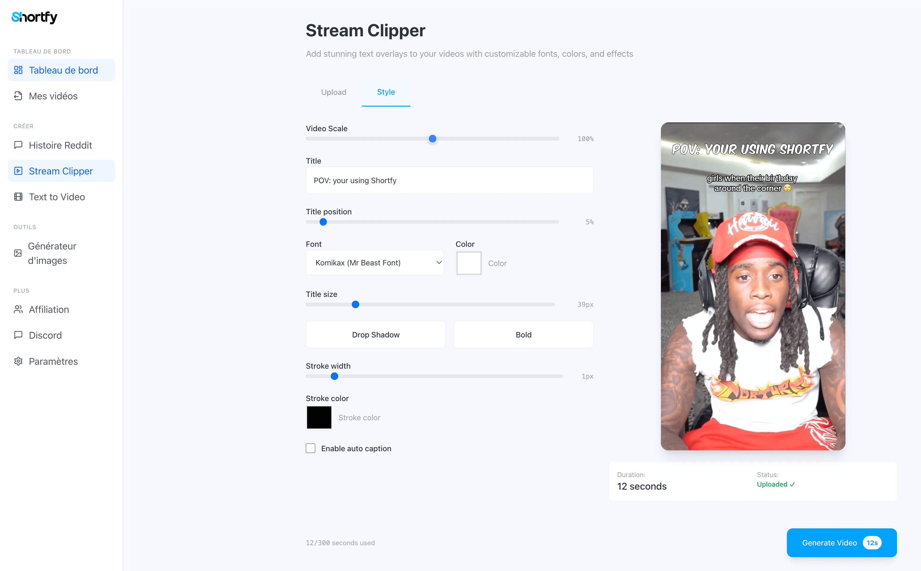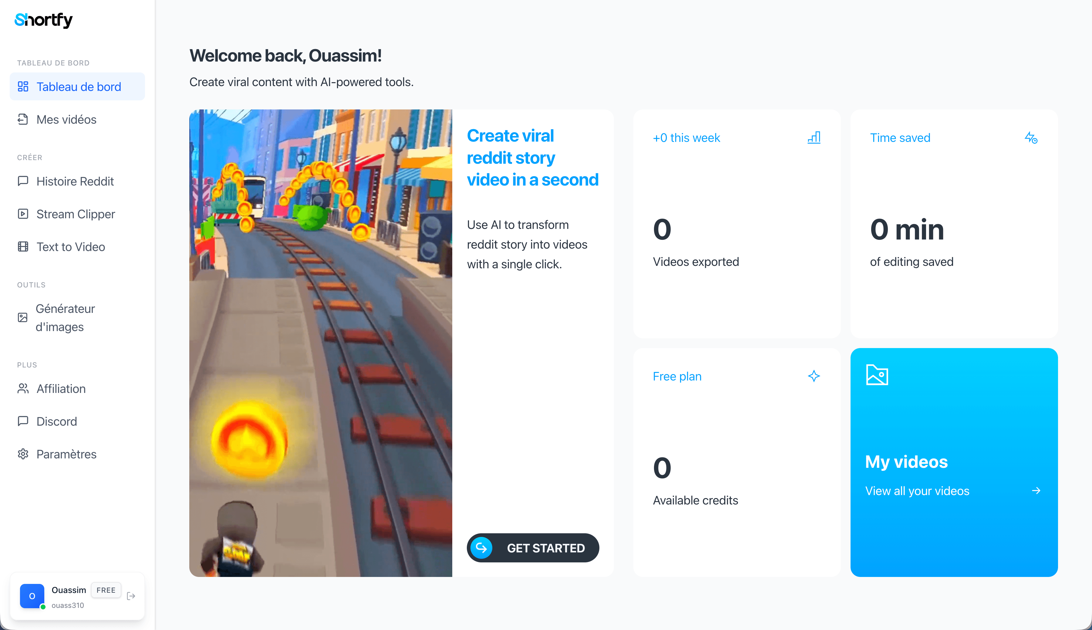 Shortfy génère, édite et optimise des vidéos verticales en un clic : Reddit Stories, Text-to-Video, Stream Clipper, templates viraux et voix IA.