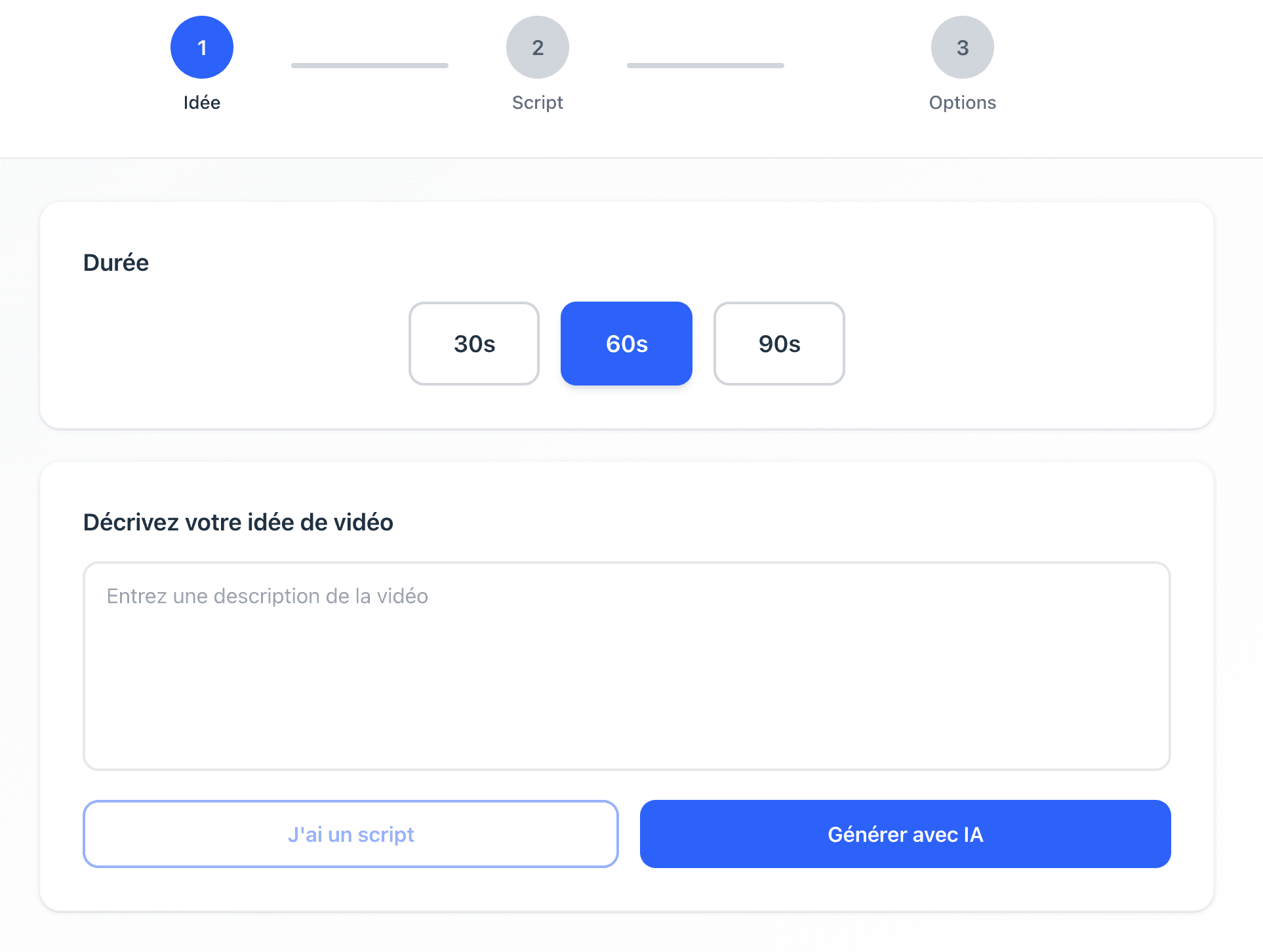 Shortfy transforme votre texte en vidéo complète : script, visuels, voix off, sous-titres, rythme et export.