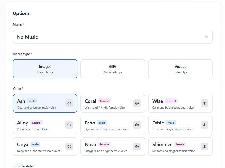 Shortfy crée le script, les visuels, la voix, les sous-titres et le rythme. Tout est automatisé en quelques secondes.